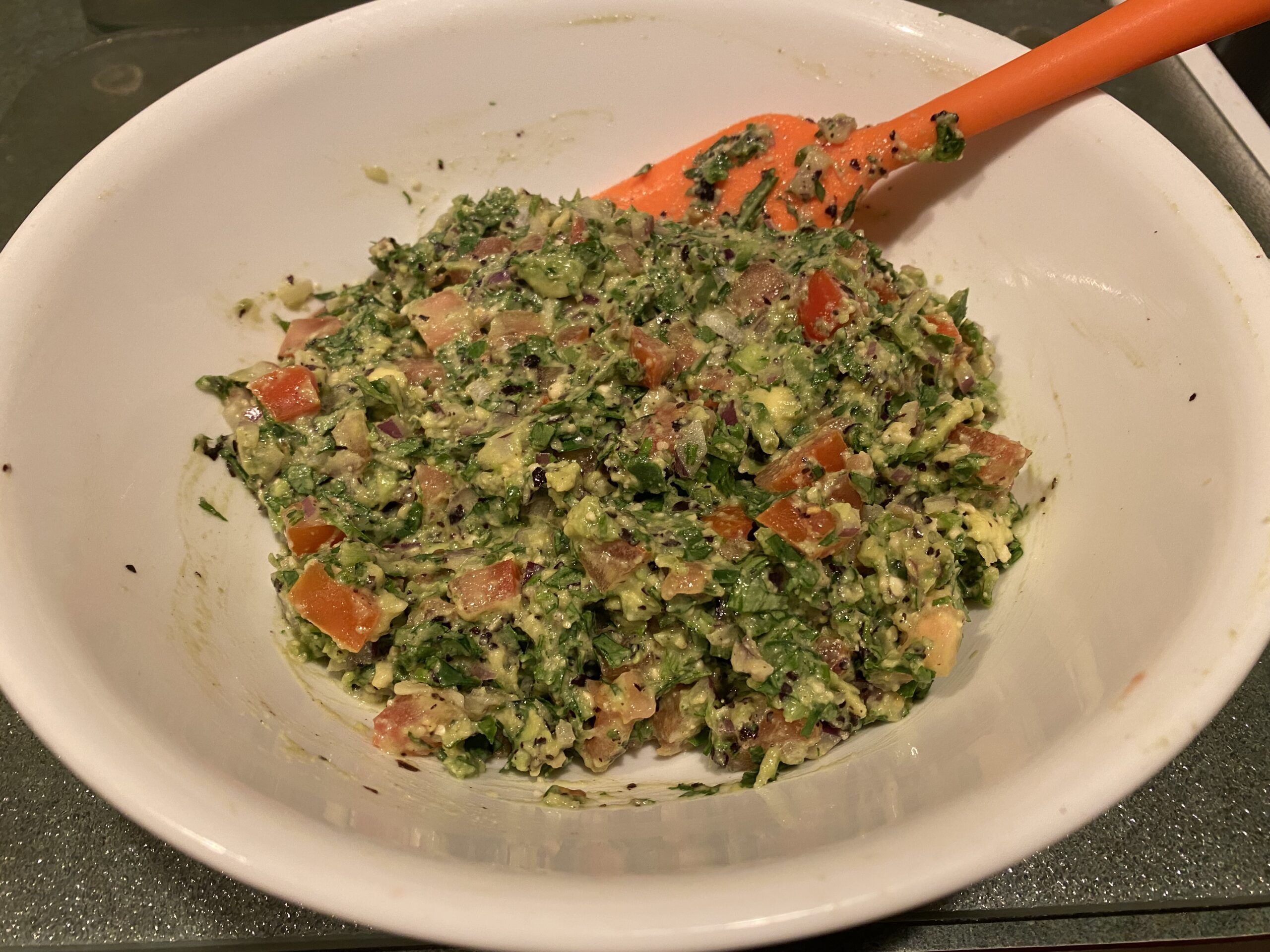 Amped-up guacamole layer: (prepare while veggies are cooking)