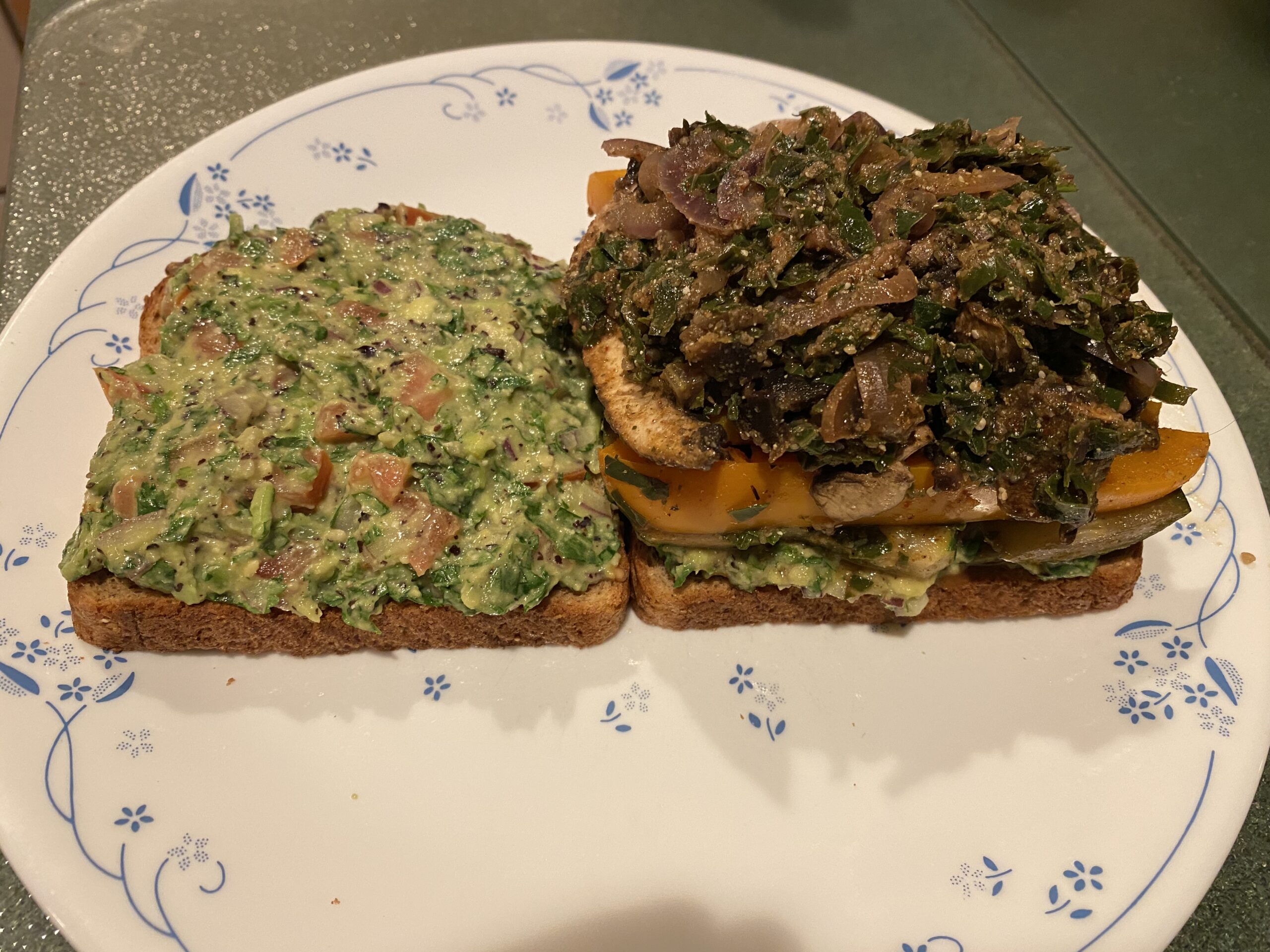 2 slices of organic whole-grain bread (or 4 slices if making 2 sandwiches) OR if making Mexi-Veggie bowl substitute bread for 1/2 cup cooked beans (any combo of pinto, black, navy)